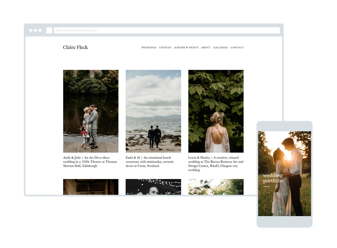 Any time a client considers booking you, it’s your aesthetic standards that are at issue. Don’t dilute the visual presentation of your awesome photography with an okayish website. Because, when you put an okayish website into the world, you’re saying “I approve of this thing, that only looks okayish, to represent me”.